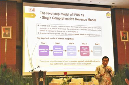 Sesi kedua dibawakan oleh Hendang Tanusdjaja (Ketua Bidang Pendidikan dan Pelatihan Profesi IAMI) untuk mensosialisasikan PSAK terbaru dan akan keluar ditahun 2020 yaitu PSAK 72 yang membahas mengenai isu akuntansi pendapatan dan pemutakhiran standar baru.